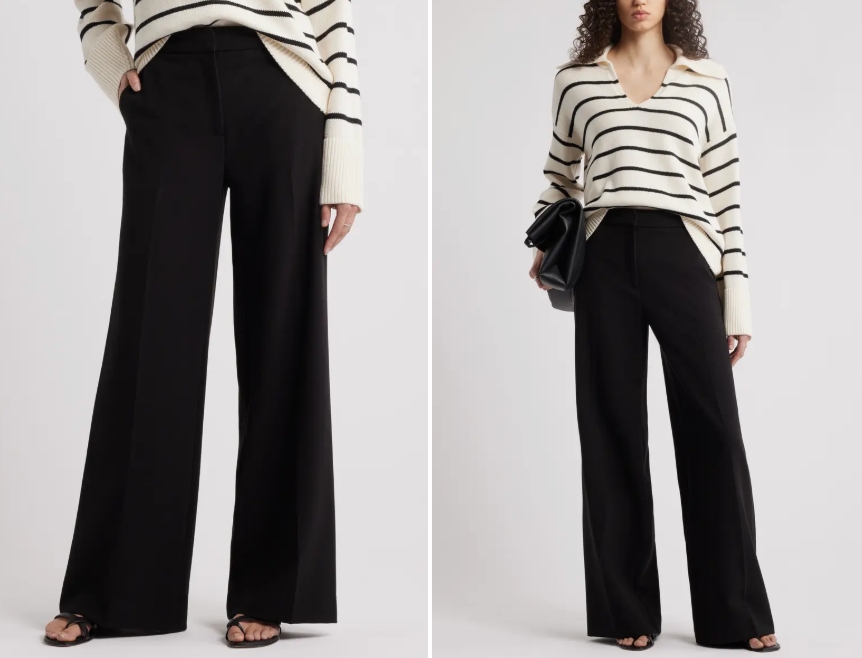 Smart casual doesn’t mean everything needs to be dialed down. Sometimes a single elevated piece can ground your whole outfit. Wide-leg trousers, especially in a neutral color, are a great example.